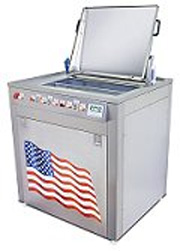Cette machine à laver de PMR Systems fonctionne autour d'une largeur de bande de 4 KHz à l'une ou l'autre de 4 fréquences centrales sélectionnables : 40. 72, 104, 170 kilohertz. La société tient un brevet sur leur variation de fréquence de balayage (la cadence de balayage dans la largeur de bande de 4KHz est variable). Ceci évite d'endommager les pièces dues à la résonance. Il est de la plus haute importance à se débarrasser de tous les contaminants sur les bio implants avant de les encapsuler dans un boîtier en silastomer ou métallique. Enlever les contaminants permet aussi aux silastomers d’adhérer au boîtier métallique. Cette machine est capable d’enlever toutes ces minuscules particules.