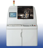 Ici, le transport des cartes est effectué par une commande d’un moteur servo à 3 axes. Le champion 8300 peut éjecter des dépôts de diverses formes comme par exemple, un patron avec des points ou des lignes, un “underfill“ ou une encapsulation. Il peut faire ainsi à une vitesse allant jusqu'à 45000 dépôts par heure. Le volume d’un point peut être aussi petit que 1 nanolitre et l'exactitude du volume est indépendante de la taille, de la viscosité ou de la température du dépôt. Cet exploit est rendu possible par l'utilisation de la " True Volume Piston Positive Displacement Pump" qui est breveter. La pression d’air requise pour l’opération est de 75 psi et la consommation d'air est 1 CFM. Si vous ressentez le besoin, consulter le lien suivant qui contient les fiches de caractéristiques: http://www.creativedispensing.com/ Images/8300-ds.pdf