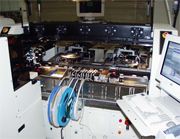 Ceci est un investissement de $1800.000 dans une ligne d’assemblage en série de puces. Il consiste en plusieurs composants. Pour donner une brève vue d'ensemble, le PCB vierge passe d'abord par le AVX1500, une imprimante à pochoir qui applique la pâte sur la carte. Le PCB entre ensuite dans le Champion 8300 Dispenser pour recevoir des ”underfills”, de l’époxyde ou des adhésifs. Finalement, la machine APS-1H prend des ”dies” d'un mécanisme d'alimentation de ”wafers” à ruban sur bobine. ou d'autres composants venant du MT-30 (qui gère plusieurs transporteurs de plateaux) et les placent sur le PCB.