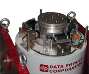 Un bio implant typique se compose d'un circuit intégré emballé dans une boîte en métal parfaitement scellée. Les boîtes elles-mêmes sont enveloppées dans un genre de moulure en polymère élastique pour que le patient ne se plaint pas qu'il sent un corps étranger dur dans lui. Parce que que nous voulons nous assurer que les bioimplants survivent au patient dans ses rencontres quotidienne avec toutes sortes de vibrations, nous les soumettront à des forces aléatoires afin de simuler ces conditions. Nous ne nous inquiétons pas des effets dus au chocs puisque les tissus mous dans le corps du patient dans lequel on retrouve les bio implants, offrent probablement un assez bon coussin. Afin de tester une grande quantité de bio implants dans le plus court lap de temps, nous voulons accélérer leur processus de vieillissement en les exposant à des conditions beaucoup plus ardues que nous éprouverions nous-meme pendant une vie entière. Nous avons choisi comme excitateur le modèle DP-V011 de DataPhysics et son amplificateur de puissance associé (modèle A-120). Il peut fournir une force maximale aléatoire de 11 livres ce qui correspond à une accélération maximum de 25g quant il est déchargé (pour comparaison, soumettre des êtres humains à 8g est mortel). Cette valeur de force est plus que suffisante puisque les bio implants vont probablement peser au plus 50 grammes. L’excitateur peut procurer une fréquence allant jusqu'à 7000 hertz. Nous avons choisi cette valeur élevée parce que la fréquence de résonance des puces de la taille d'une tête d'épingle, celle des fils en métal très fins liant les puces ensemble, et celle des joints de soudure de plomb, est très haute. Enfin un bio implant ayant un diamètre allant jusqu'à de 2,36 pouces peut se reposer confortablement sur la table de l’excitateur sans surplomber cette même table.